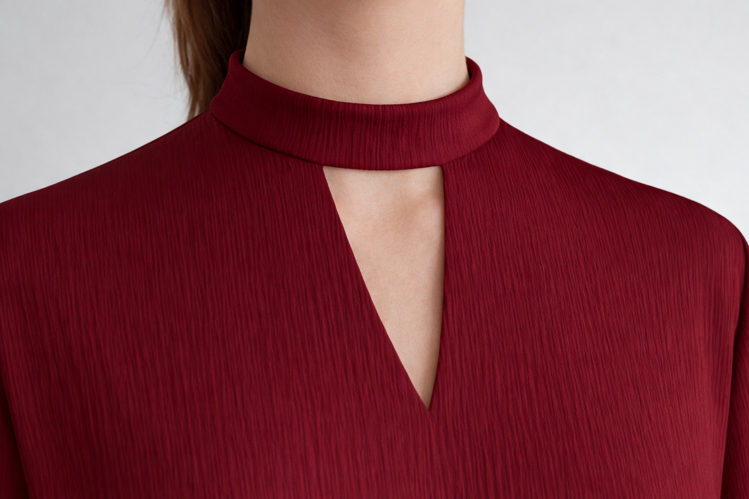 Воротник-стойка с V-образным вырезом — это элегантная и выразительная деталь, которая способна преобразить любое изделие. Строгий силуэт, чёткие линии и благородная посадка делают этот воротник универсальным решением для блуз, платьев, жакетов и даже верхней одежды.